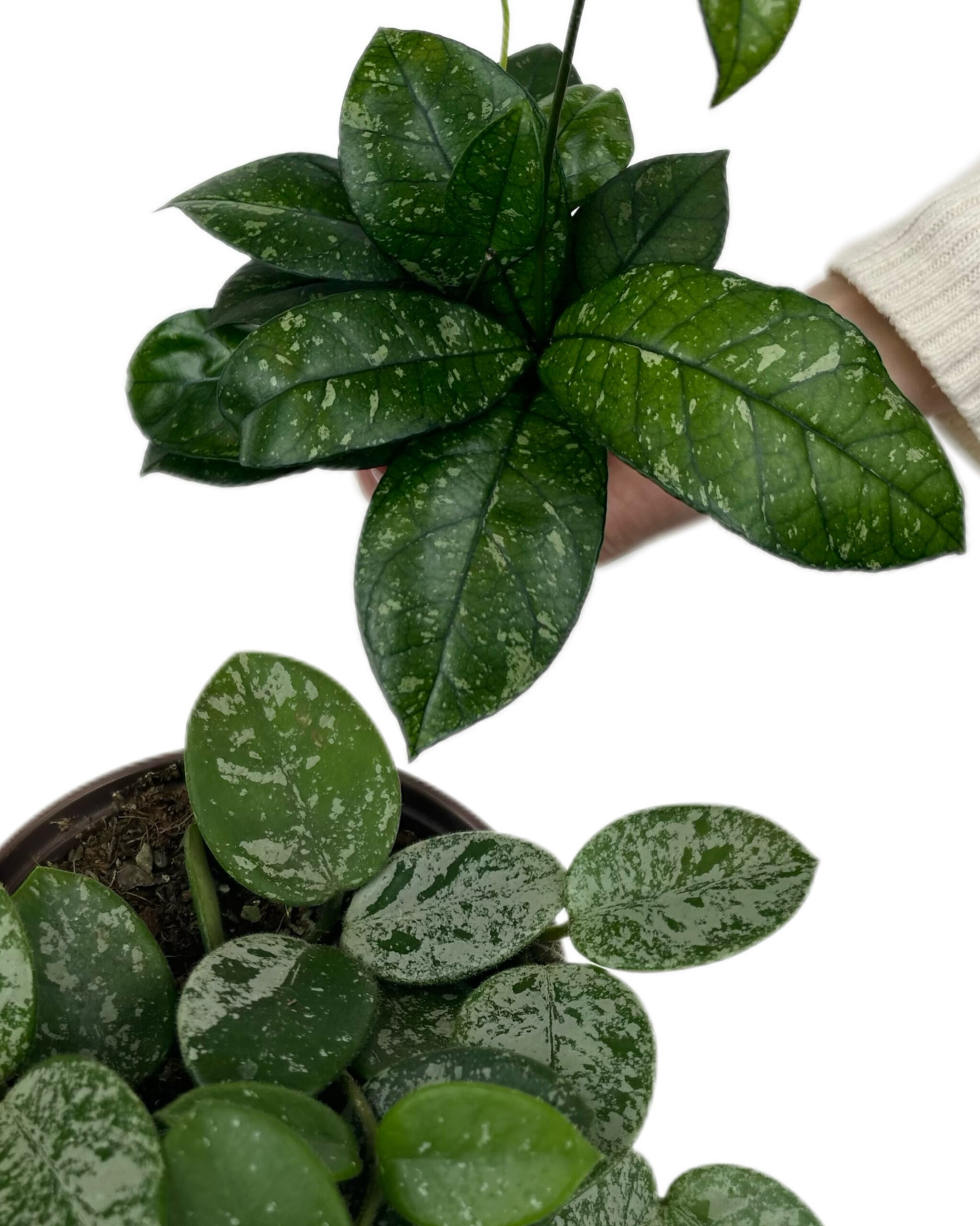 Za skrbne lastnike radovednih hišnih ljubljenčkov smo pripravili poseben komplet sobnih rastlin, varnih za živali. Aktualna sestava kompleta združuje priljubljeni rastlini Hoya ‘Mathilde Splash’ in Hoya ‘Crassipetiolata’.