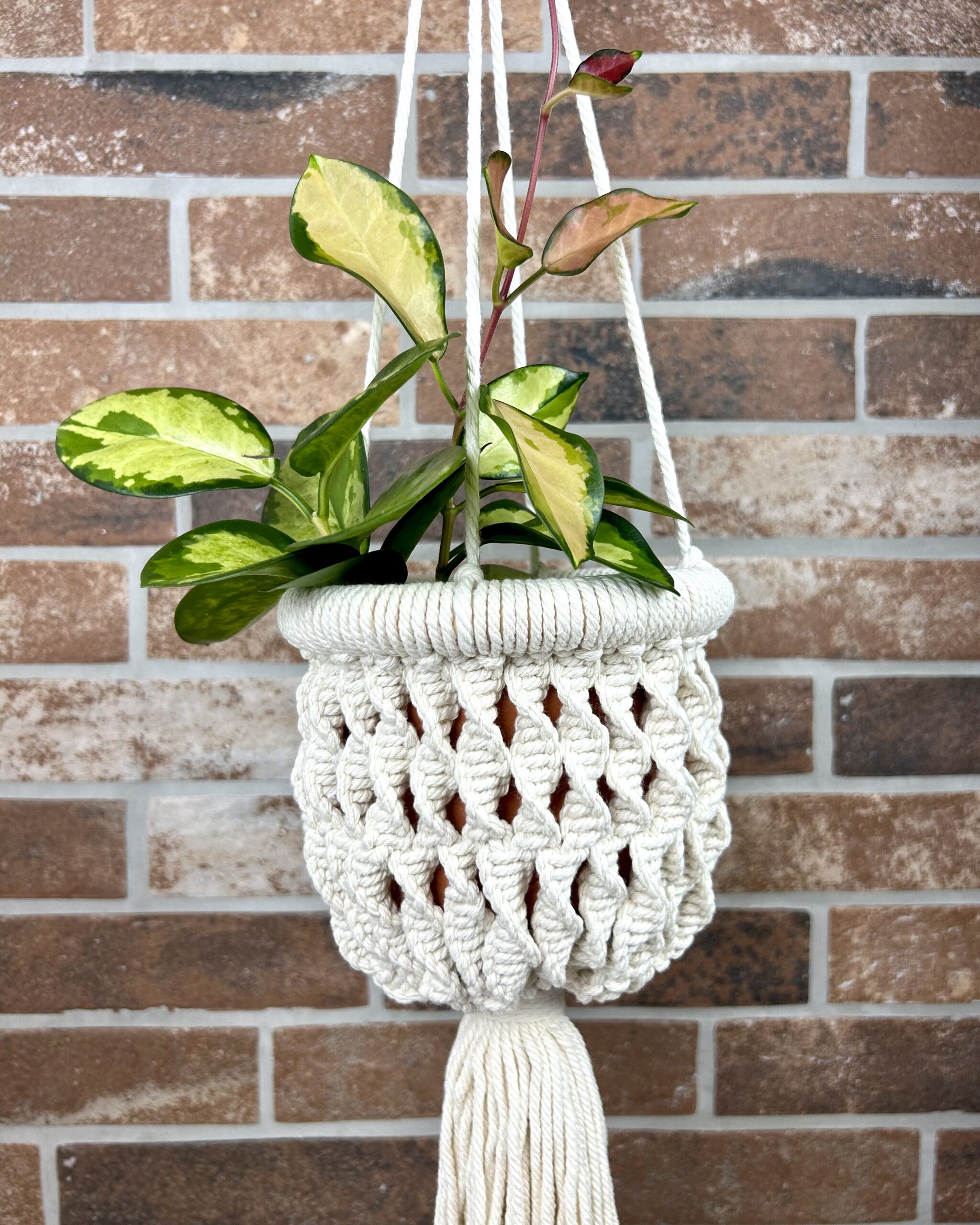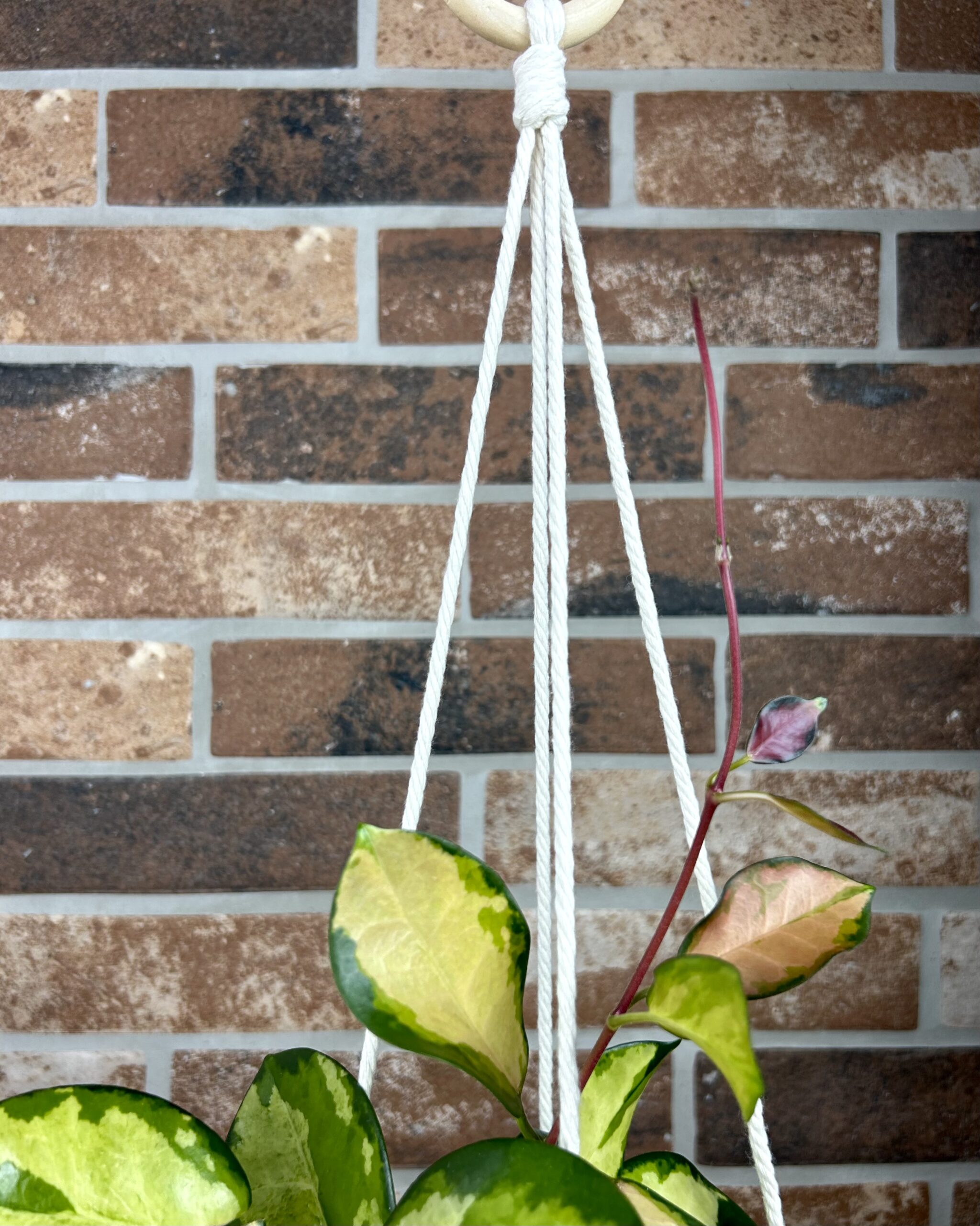 Uporaba: Okroglo obešalo na vrhu omogoča enostavno namestitev. Makrame je primeren za postavitev v notranjih prostorih ali pod streho na balkonu ali terasi, kjer je zaščiten pred vetrom in dežjem.
