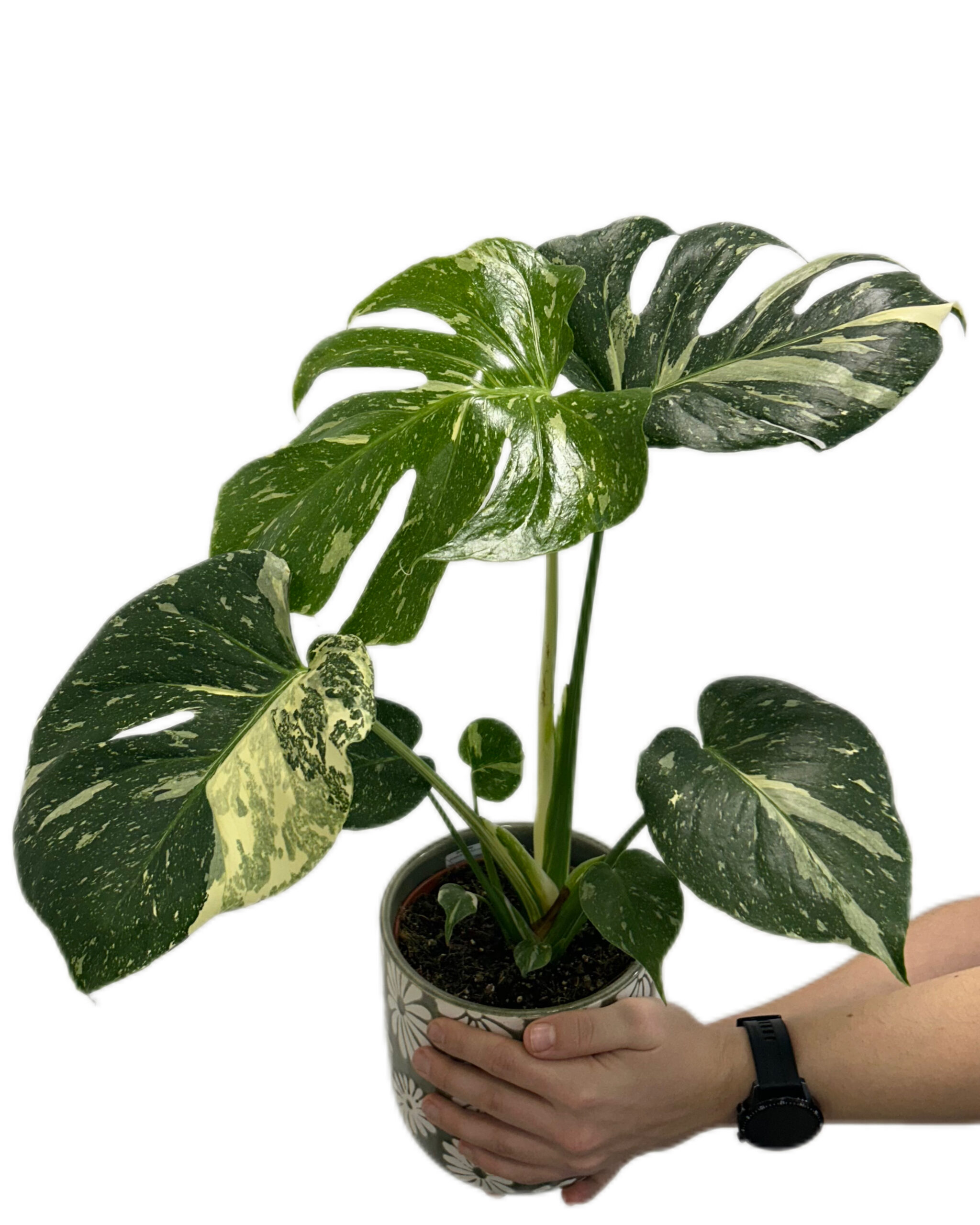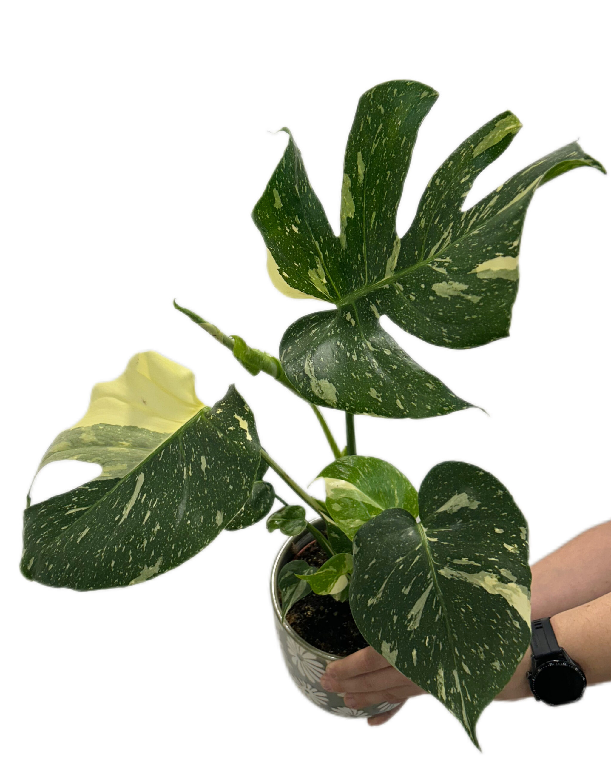 Monstera ‘Thai Constellation’ je posebna variegirana različica ene najbolj priljubljenih sobnih rastlin. Ustvarjena je bila kot stabilizirana genska mutacija v laboratoriju na Tajskem z uporabo metode tkivnih kultur, s čimer so dosegli, da variegacija ostaja stabilna skozi celotno rast. Še ne tako dolgo nazaj je bila cenovno zelo nedostopna, danes pa je zaradi večje razpoložljivosti dosegljiva širšemu krogu ljubiteljev rastlin. Njeni listi so posuti s kremno belimi lisami, razpršenimi kot zvezde na temnem ozadju, kar ji daje edinstven in prepoznaven videz. Čeprav je vzorec variegacije predvsem genetsko pogojen, ji svetel prostor z obilico posredne svetlobe omogoča, da pride do polnega izraza. Raste počasneje kot Monstera deliciosa, vendar nekoliko hitreje kot Monstera ‘Albo Variegata’. Kot vsaka plezalka bo sčasoma hvaležna za oporo, najbolje iz šotnega mahu ali kokosovih vlaken.
