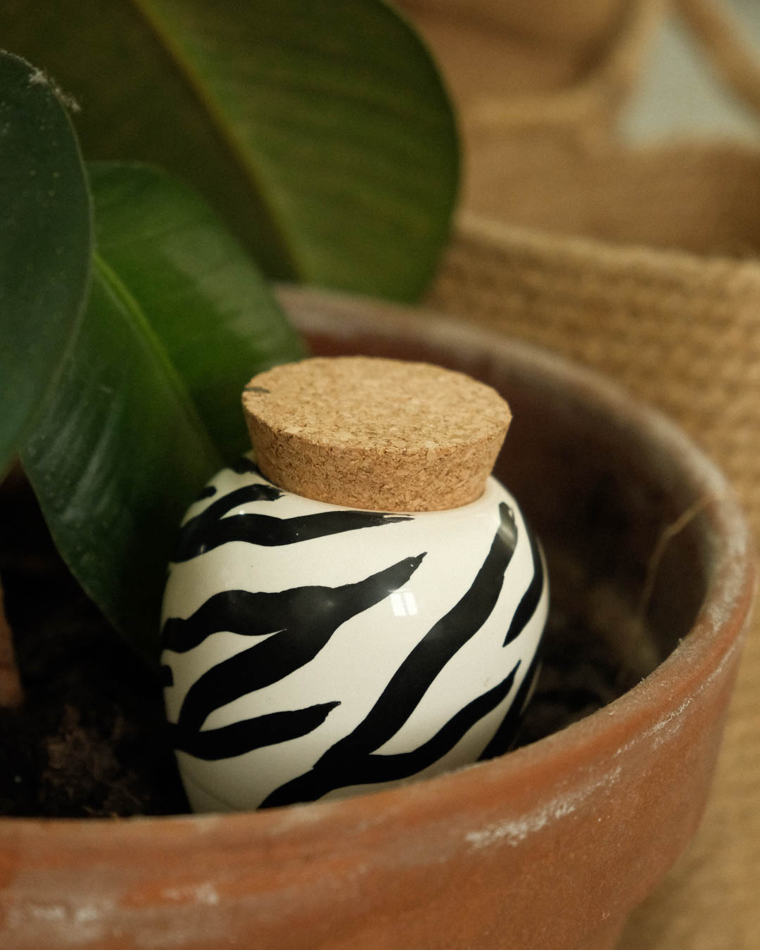 Olla Pepin – Zebra je ročno izdelana vlažilka prsti iz mikroporozne keramike, ki zagotavlja avtonomno in postopno zalivanje sobnih rastlin. Vedno zagotavlja ravno pravšnjo količino vode in poskrbi, da se rastline razvijajo v močne in lepe primerke.